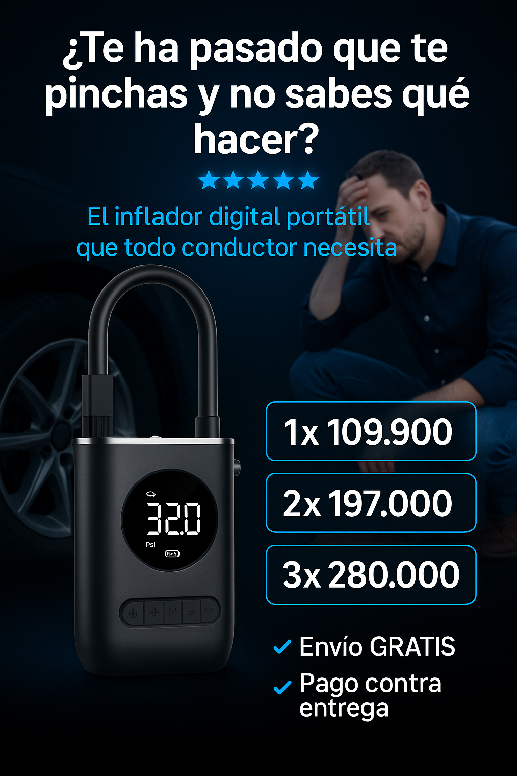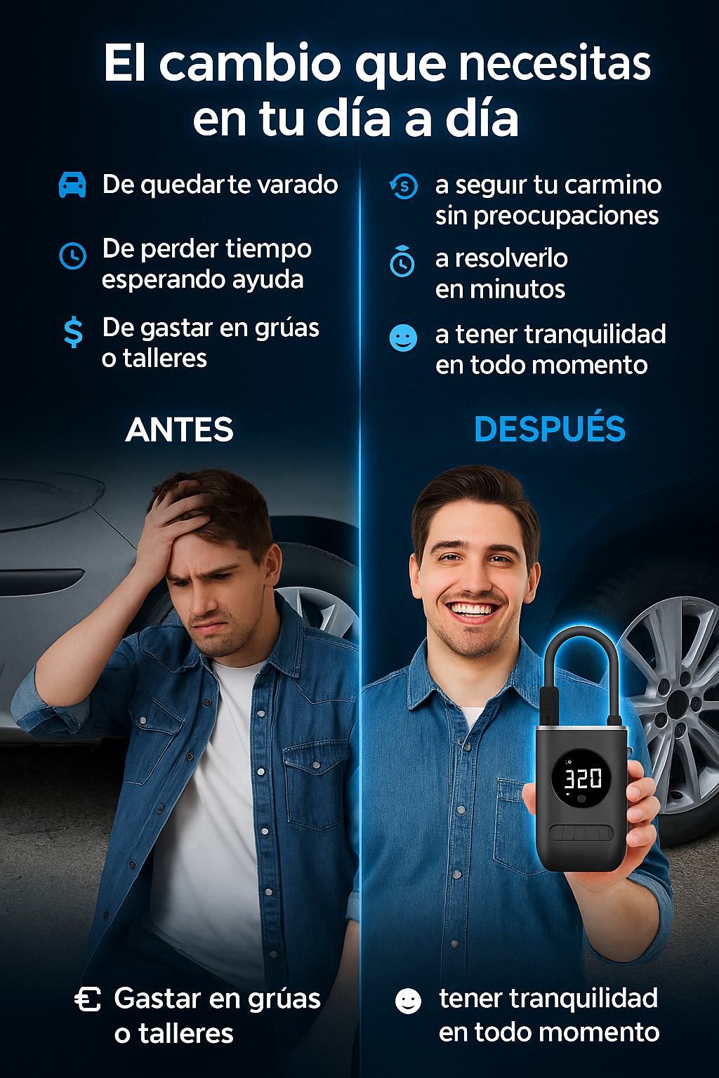 “Me salvó de quedarme varado en plena autopista. Súper fácil de usar en el carro y en minutos tenía la llanta lista.”